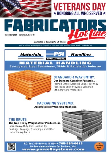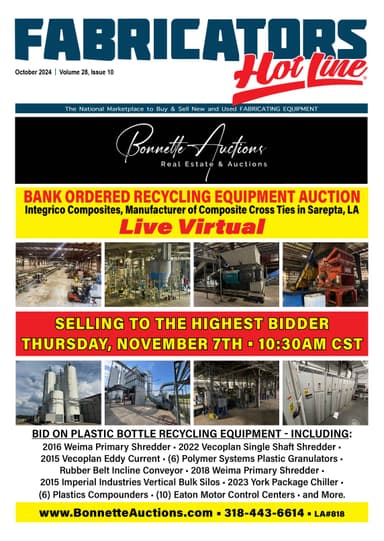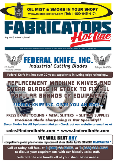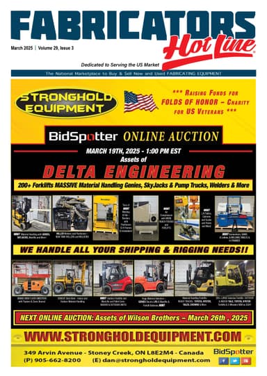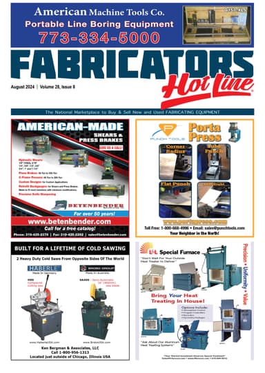 Fabricators Hot Line is a monthly digital publication designed to keep fabricating professionals current on new, used and reconditioned fabricating machinery, equipment, materials for sale, parts, tooling, supplies, auctions & services.